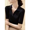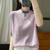 Camiseta de Mujer de Punto de Lana de Manga Corta Verano Nuevo Ajuste Delgado Elástica Transpirable Cuello Polo Top