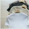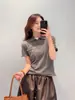 En stock miumiu casa camiseta de punto con cuello de solapa mujer versión alta cachemir seda punto de canalé manga corta mujer diseño de ribete
