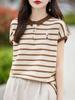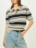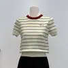 Nuevo Diseño 2026 Top de Punto Rayado de Manga Corta para Mujeres Petites con Cuello, Estilo Corto para Primavera