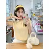 Verano Nueva Llegada Estambre Seda de Morera Lana Tejido Camiseta Manga Corta para Mujer Cuello POLO Gato Bordado Top Delgado Manga Media