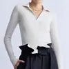 Camiseta de Punto de Manga Corta con Solapa en el Hombro Derecho Estilo Coreano para Mujer 2025 Verano Nueva Cuello Polo Versátil Efecto Adelgazante Top Blanco