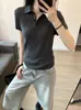 Polo Casual de Manga Corta Ajustado Tejido de Punto Fino Camiseta Top con Solapa para Mujer 2025 Nueva Tendencia de Verano Estilo Coreano