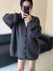 Estilo Perezoso Holgado Versión Grande Cuello en V Suave Cera Chaqueta Suéter de Punto Cárdigan Versátil Retro Nuevo Otoño e Invierno para Mujer