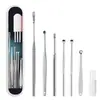 Juego de 6 cucharas de acero inoxidable para excavar oídos, cuchara para excavar oídos, juego de herramientas para oídos, resorte espiral portátil para limpieza de oídos