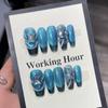 [Hecho a mano toma real] Ojo de gato mina azul hecho a mano para usar manicura pegatinas de uñas largas blancas de alta calidad desmontables