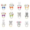 Elefante de dibujos animados lindo Conejo Blanco ciervo oso polar rana anillo de madera de manivela sonajero de mano educativo juguete de peluche para bebé