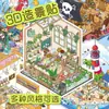 Colección de escenas en miniatura este adhesivo de paisaje niños hecho a mano DIY adhesivo de descompresión rompecabezas escena de cabaña tridimensional almacenamiento