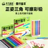 Lápices de Colores Borrables Bambú Verde para Estudiantes de Primaria Triángulo Especial Postura Positiva 12 Colores 24 Colores Primer Grado Segundo Grado Niños Set Oleoso