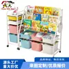 Estantería para niños de madera maciza de 5V Estante para libros de imágenes Estante pequeño para almacenamiento de juguetes de bebé para el hogar Combinación de libros de empujar y jalar de pie