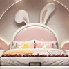 Cama Infantil de Madeira Maciça Coelho com Cabeceira Estofada Macia Nova Cama Infantil Quarto Painel Traseiro de Cabeceira Compra Única Integrada Ultrafina