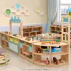 Directo de fábrica rincón de área de lectura de jardín de infantes combinación de gabinete de juguetes madera maciza madera de caucho estantería de dinosaurios estantería para libros ilustrados estantería