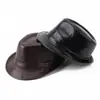 Sombrero de alta gama para hombres de mediana edad y mayores, cuero PU, moda, versátil, retro británico, cálido, sombrero Jazz, reunión de regalo