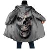 Comercio Exterior Transfronterizo Sombrero de Calavera Sombrero Poncho Suelto Engrosado Botón Felpa Impresión 3D Gris Algodón Abrigo Abrigo
