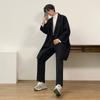 Chaqueta de lana 100% pura para otoño e invierno, informal, con solapa corta, holgada, estilo informal de negocios.