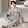 [Algodón Lycra de 40 hilos] Pijama para hombre, Primavera y Otoño Algodón Puro Manga Larga Invierno Pijama para hombre que se puede usar como ropa de casa