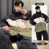 Pijama de Coral Fleece para Hombre Invierno Chaqueta Acolchada de Tres Capas Engrosada Más Terciopelo Cálido Estilo Otoño e Invierno Conjunto de Ropa para el Hogar para Niños