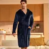 Bata de Franela Unisex Estilo Europeo Tallas Grandes Otoño/Invierno con Capucha para Pareja Pijama Largo Cálido Cepillado