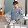 Pijamas de manga larga para hombre, de nuevo estilo, para primavera y otoño, para jóvenes de mediana edad, para estudiantes, finos, informales, para el hogar, para invierno.