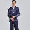 Talla Europea Talla Grande para Hombre Primavera y Otoño Manga Larga Seda Pijama Solapa Pequeña Casual Traje de Hebilla Abierta Ropa para el Hogar Comercio Exterior