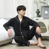 Pijamas de solapa para hombre, de moda coreana, de primavera y otoño, de manga larga, de color liso, sencillos, a cuadros, de seda jacquard, ropa fina para el hogar.