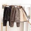 Novedad Otoño e Invierno pijama para hombre tres capas terciopelo de leche acolchado invierno súper grueso traje cálido para casa para hombre RR