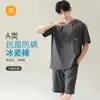 Pijama de seda sintética para hombre, de verano, de manga corta, fino, estilo coreano, para estar en casa, traje de dos piezas de seda helada para primavera.