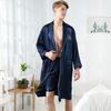 Pijamas al por mayor para hombre, primavera y otoño, seda de hielo, manga larga, seda artificial, alta calidad, para hombre, fino, talla grande, ropa de casa