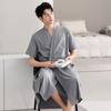 Nuevo Camisón de Algodón Gasa Teñido con Hilo para Hombre Primavera y Otoño Verano Suelto Algodón Manga Media Bata