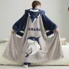 Bata con capucha de terciopelo coral para hombre, Pijama de casa para hombre, Tiburón de dibujos animados de otoño e invierno, Se puede usar en el exterior, Engrosada y de terciopelo