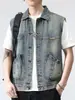 2025 Nova Marca da Moda Casual Solto Colete Jeans Masculino Outdoor Solto Americano Retrô Colete de Trabalho