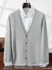 25 Cardigan de Cachemira Otoño e Invierno para Hombre Cuello en V Tejido de Punto Color Sólido Joven y de Mediana Edad Casual de Negocios Chaqueta de Punto Abrigo Elegante