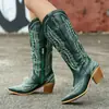 Botas Altas para Mujer, Botas Vaqueras Occidentales, Punta Cuadrada Pequeña, Tacones Gruesos, Tacones Altos, Cremalleras Laterales, Botas Altas Hasta la Rodilla, Botas Altas Bordadas