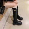 Botas Martin de tacón alto con suela gruesa artificial de PU de tubo alto negro nuevas de Europa y Estados Unidos con cremallera trasera, botas de mujer de escenario de gran tamaño al por mayor