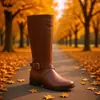 Hebilla de Cinturón de Exportación Europea y Americana Tacón Medio Grueso Botas Hasta Debajo de la Rodilla Botas de Caballero Talla Grande 40-46 Botas Rectas Estilo Transfronterizo