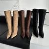 Otoño e Invierno 2025 Nuevo Retro Punta Afilada Simple Gamuza Moda Tacón Alto Aguja Botas de Caballero por Encima de la Rodilla para Mujer