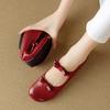 Piel de Vaca ~ Zapatos de Piel Súper Suaves Zapatos Planos Franceses Punta Cuadrada para Mujer Retro Tacón Bajo Zapatos Mary Jane color vino tinto
