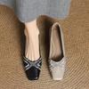 Sandalias Cuadradas sin Cierre Estilo Francés Chic Primavera Mujer Moño Tacón Bajo Planos Elegantes Zapatos de Ballet