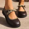 Zapatos Mary Jane de piel de vaca con lazo texturizado, súper suaves, planos, de punta redonda y suela suave de cuero para mujer, primavera de 2025