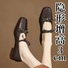Aumento de 3 cm ~ Zapatos Mary Jane franceses súper suaves con aumento para mujer 2025 nuevos zapatos de primavera poco profundos con lazo para mujer