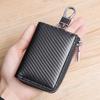 Estuche multifuncional para llaves de cuero con diseño de fibra de carbón, con cremallera de 7 caracteres, de piel de vaca en color de contraste.
