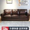 Sofá de cuero para sala de estar de apartamento pequeño, de lujo y ligero, estilo americano. Sofá de cuero de vaca con cera de aceite de primera capa de diseñador simple de estilo europeo.