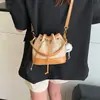 Moda Trendy Súper Popular Primavera 2026 Versátil Retro Bolso de Hombro con Cordón Cuero Suave Estilo Coreano Único Bolso Cruzado Tipo Cubo