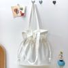 Bolso de hombro de lona con cordón minimalista japonés y coreano para mujer, bolso de lona liso de color sólido, bolso de tela literario, bolso de lona estilo dulce