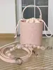 Bolso pequeño tipo cubo con cordón y brillantes diamantes de moda de verano para mujer, popular bolso bandolera con cadena 2023