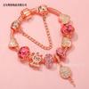 Joyería de Mano de Venta Caliente Transfronteriza DIY Resina Aleación Agujero Grande Pulsera de Corazón con Cuentas Rosa Pan Familia Cuentas de Agujero Grande Pulsera para Mujer