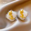 Pendientes de plata con forma de aguja francesa con letras de felpa retro, elegantes y elegantes, de otoño e invierno, nuevos pendientes de alta calidad.