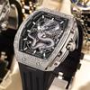 Reloj Bugatti completamente nuevo para hombre, reloj personalizado de Dragón, repujado, incrustado con diamantes, elegante, con forma de barril de vino, reloj mecánico de moda