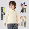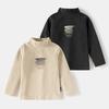 Ropa Infantil para Niños 2025 Otoño e Invierno Tops Nueva Camiseta de Manga Larga Estampada de Cuello Alto Ajustada Cepillada
