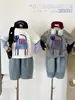 Camiseta de Primavera para Niños con Estampado de Espalda y Letra Trasera Base Blanca Estilo Americano Niños y Niñas Manga Larga Camiseta Interior