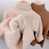 Suéter de cuello alto grueso de terciopelo de una pieza con tiras en las axilas de cera suave para niños y niñas, camisa base, parte superior interior de punto coreana para niños